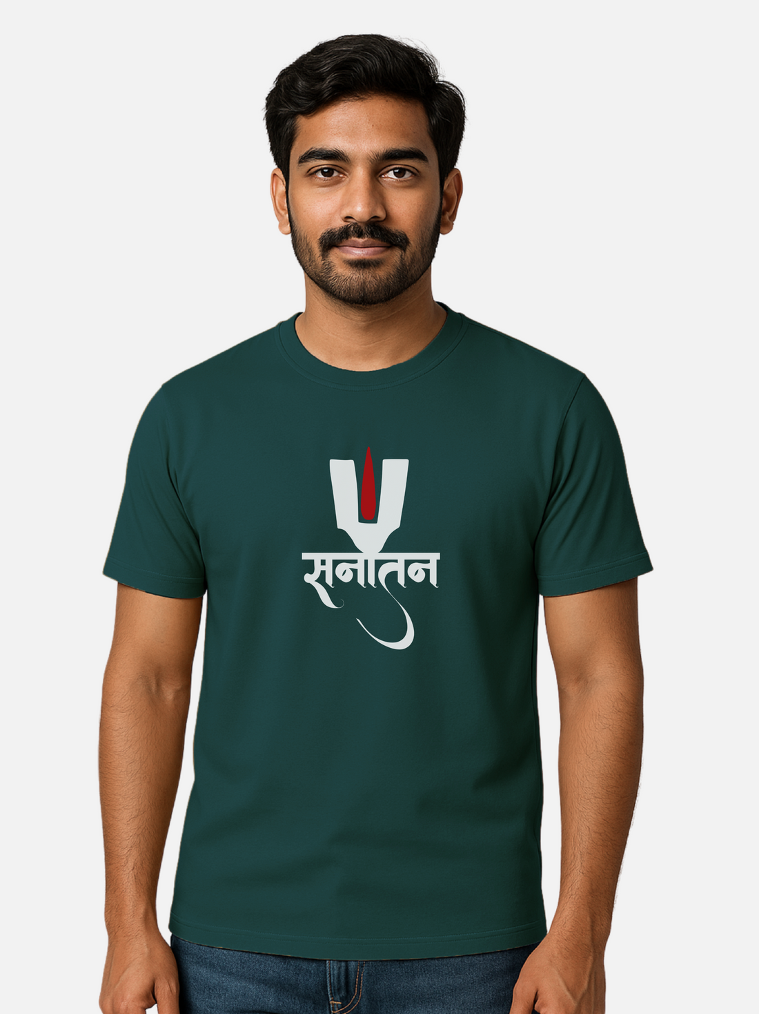 Celebrate your roots with the Sanatan Dharma Tilak Spiritual Unisex T-Shirt — a perfect fusion...